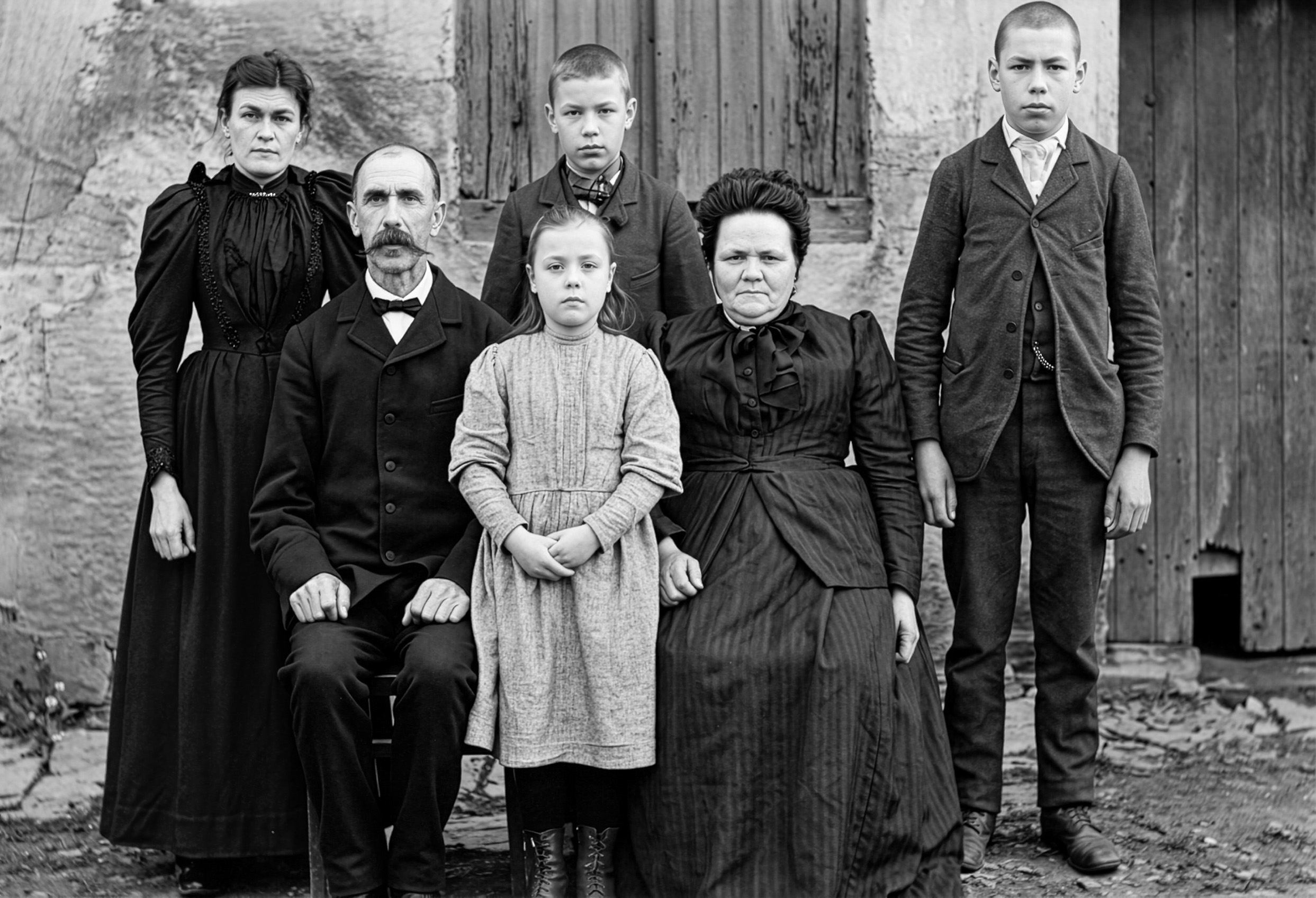 Ernest Barbe, Rosalie Brasseur et leurs enfants vers 1893 [version restaurée]