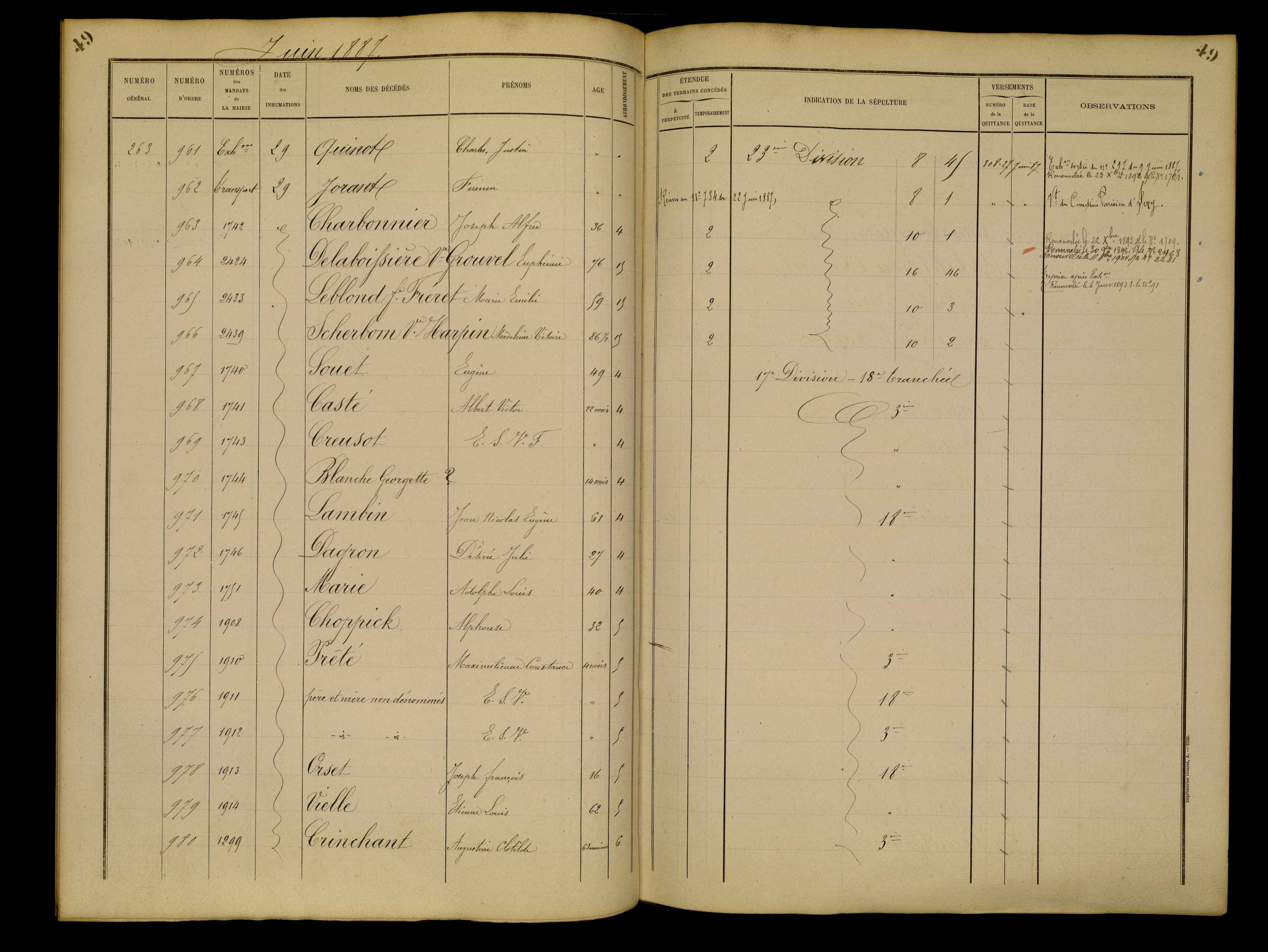 Registre d'inhumation du cimetière parisien de Bagneux - 29 juin 1887 - Alphonse Choppick