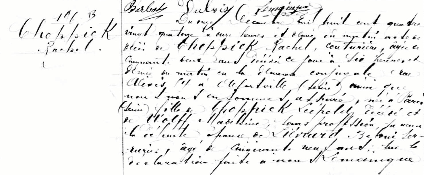 Famille de Non dénommé et Rachel Choppick [F0692] |