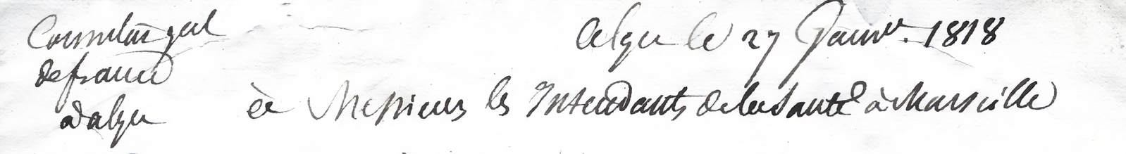 Dans sa lettre destinée à l’administration sanitaire de Marseille, le consul de France Pierre Deval rend compte de la situation de santé en Algérie avec précision :