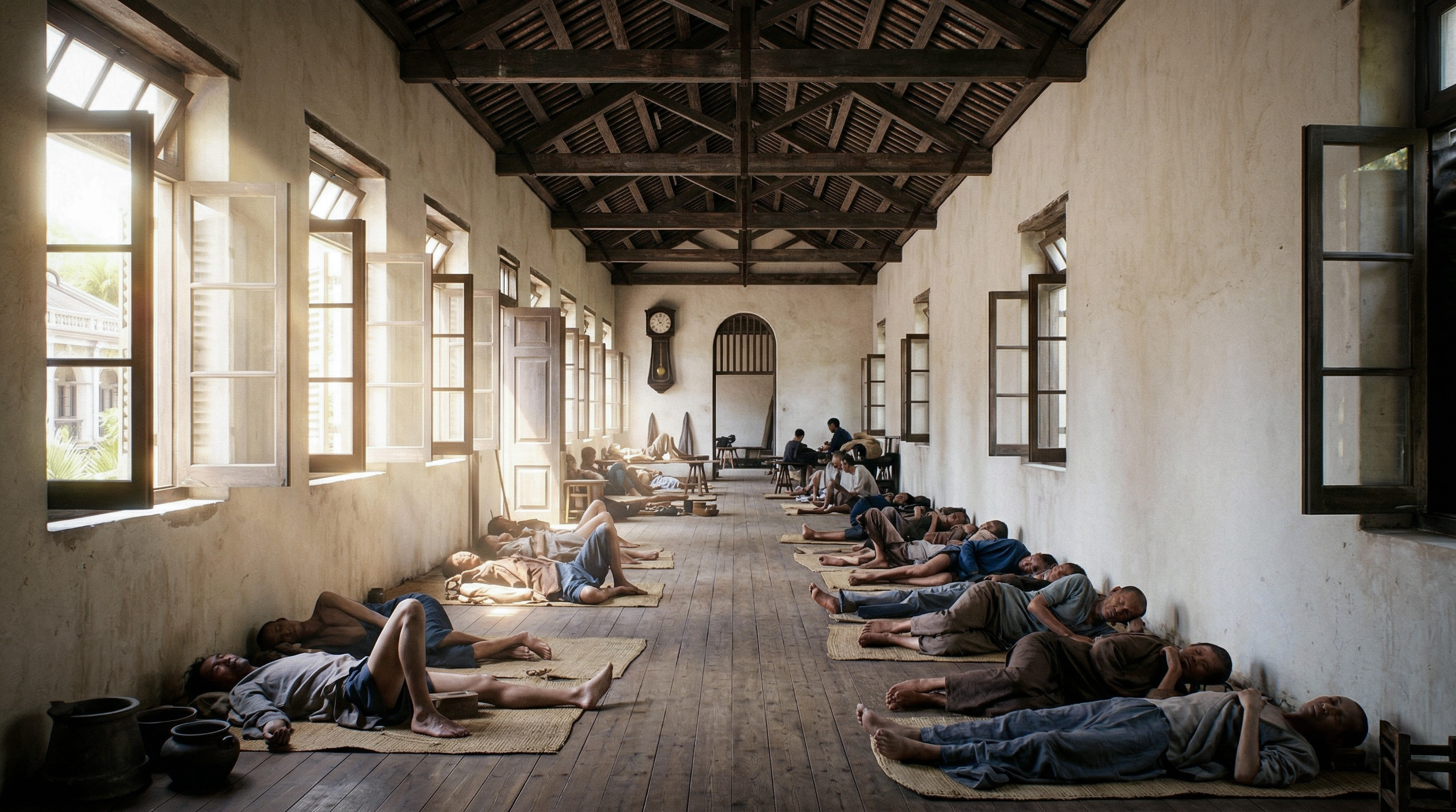 Reconstitution graphique de Didier Lebouc en avril 2026 d’après une photographie publiée par Alexandre Yersin dans son ouvrage de 1894 « Mon voyage à Hong-Kong au sujet de la peste » (source originale Fond Yersin, Institut Pasteur).