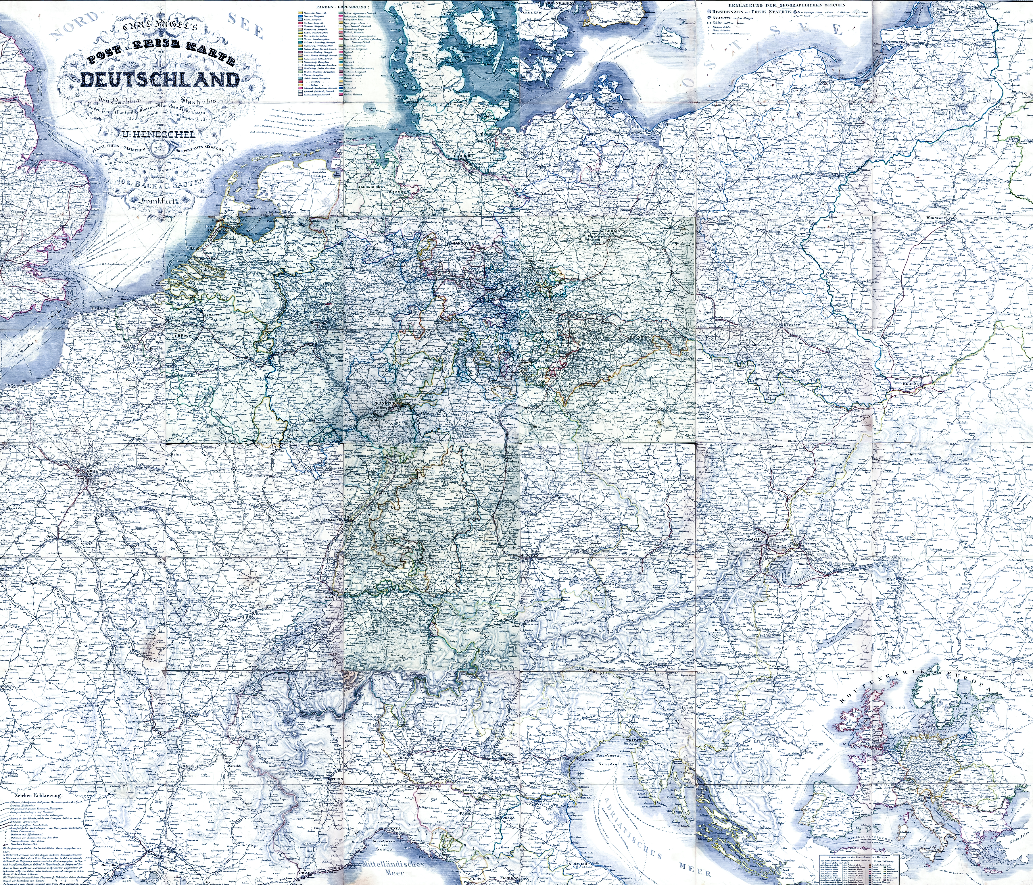 ❧ visualiser en grand les « routes de poste en Allemagne et dans les états voisins » sur une carte géographique de 1843.